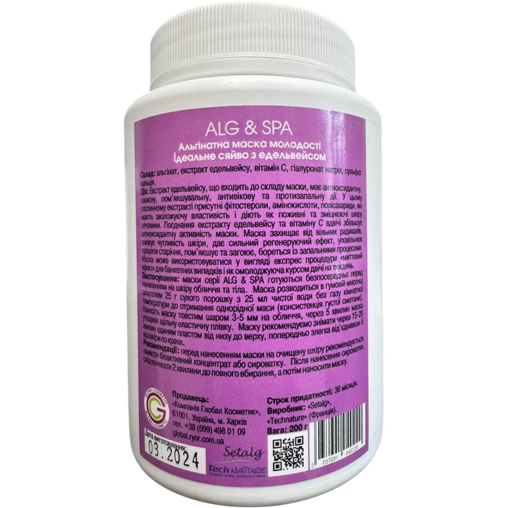 Экстракт эдельвейса входящий в состав маски, обладает антиоксидантным, защитным, смягчающим, антивозрастным и противовоспалительным действиями. Также в этом растительном экстракте присутствуют фитостеролы, аминокислоты, полисахариды, который обладают увлажняющим свойством и действуют, как питательные и укрепляющие кожу вещества.