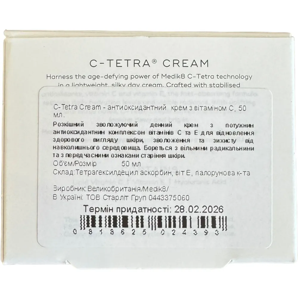 Medik8 C-Tetra Cream с витамином C предоставляет защиту от вредных радикалов, которые повреждают клетки кожи и способствуют преждевременному старению. Витамин C известен свойствами, что делает кожу лучше и придает шелковистости. В антиоксидантный крем входят гидратирующие ингредиенты, которые увлажняют кожу, усиливают цвет лица, убирают морщины.