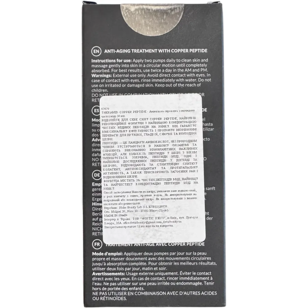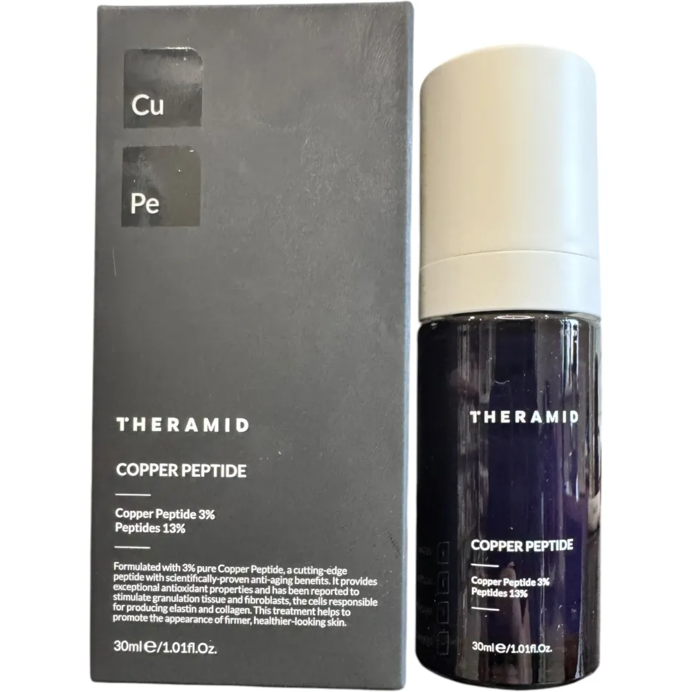 Антивозрастная сыворотка с пептидами Theramid Copper Peptide помогает коже лица долго оставаться молодой, здоровой и красивой. Это средство обладает широким спектром действия: улучшает внешний вид кожи лица, регенерирует клетки, предотвращает старение, питает, увлажняет, выравнивает тон.
