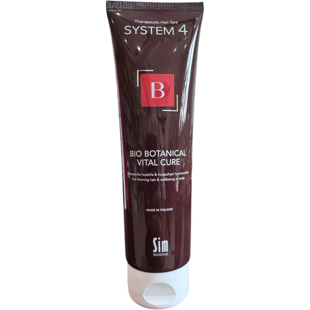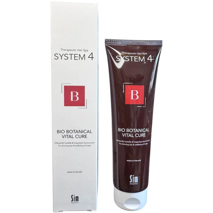 System 4 Vital Cure — био-ботанический кондиционер для укрепления и стимуляции роста редких, ослабленных волос. Улучшает микроциркуляцию кожи головы, уменьшает выпадение и делает волосы визуально гуще. В составе: экстракты растений, ментол, биотин и аминокислоты. Подходит для чувствительной кожи головы и ежедневного применения.