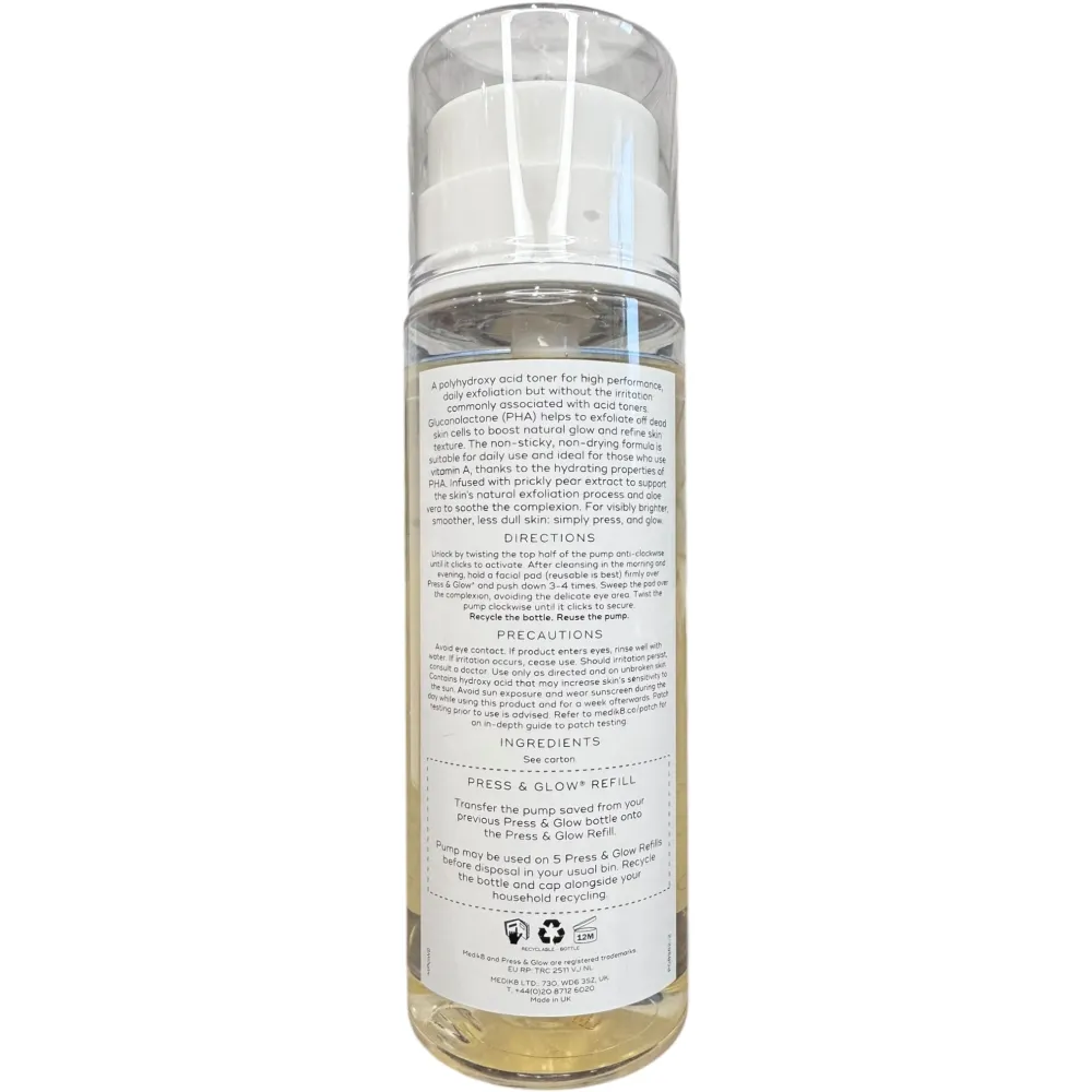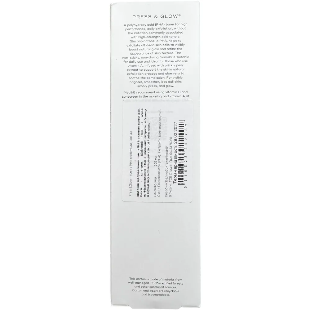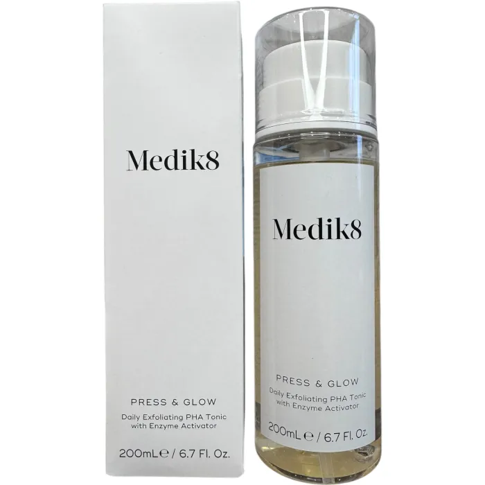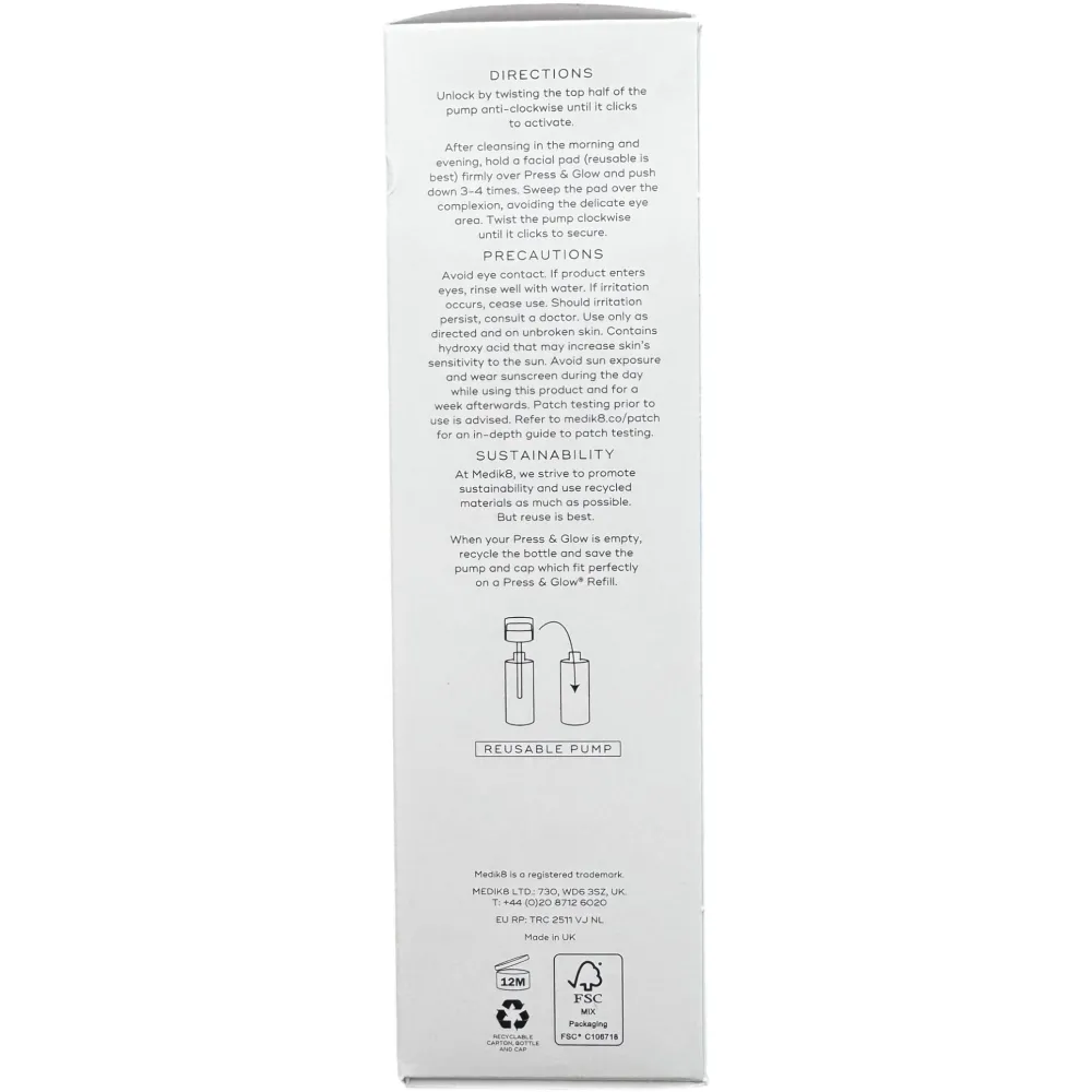 Тоник с AHA Medik8 Press & Glow содержит гликолевую кислоту. Кислота помогает убирать мертвые клетки кожи, обновляет их. Это позволяет осветлять пигментацию, способствует уменьшению морщин. Тоник улучшает состояние кожи, обладает успокаивающими свойствами, восстанавливает лицо, сужает поры. Средство не вызывает раздражения и болевых ощущений.