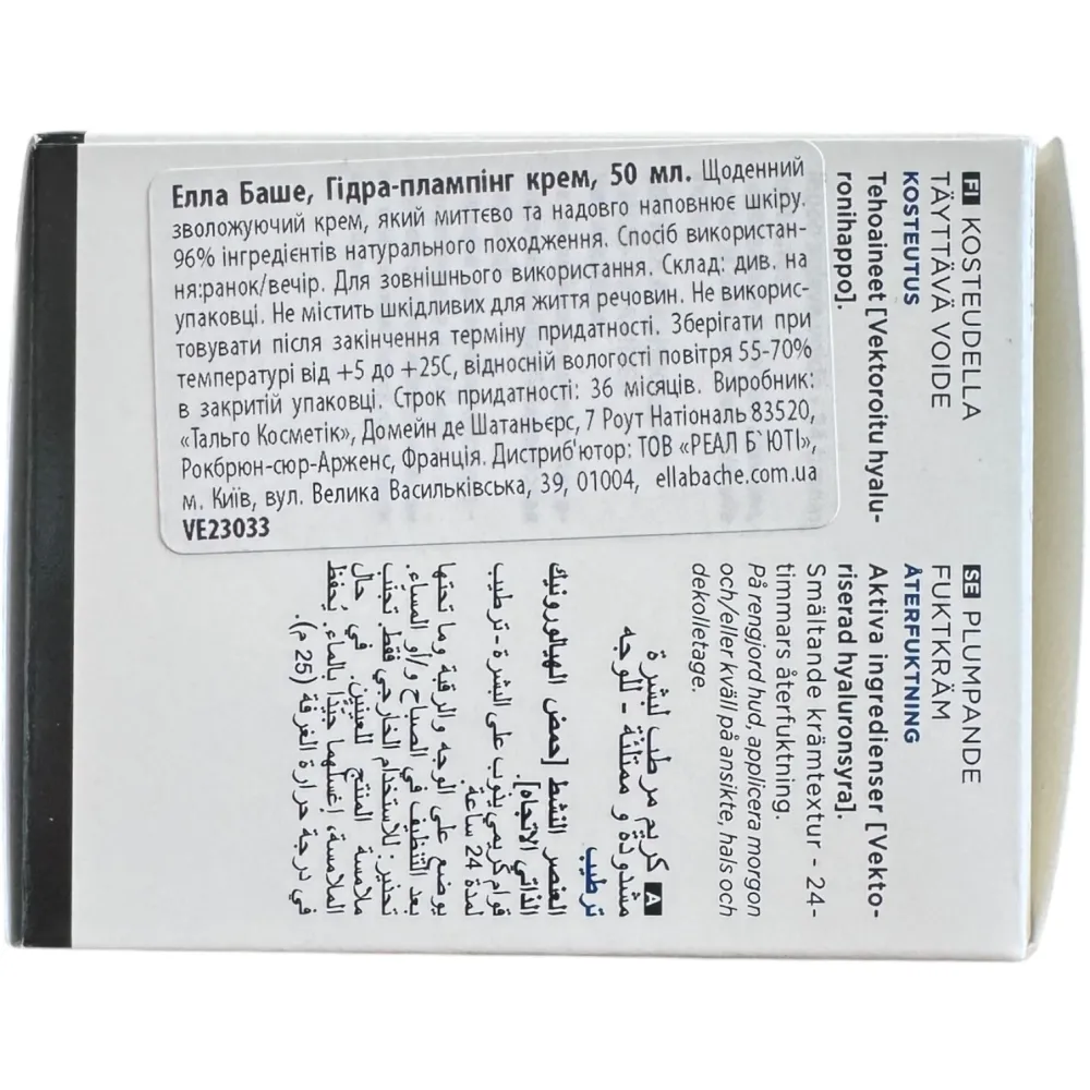 Гидра-плампинг крем Ella Bache Hydra-Plumping Cream — это интенсивное увлажняющее средство, разработанное для восстановления и поддержания водного баланса кожи. Основной активный компонент крема — автовекторизованная гиалуроновая кислота нового поколения, которая глубоко проникает в кожу и увлажняет её на трёх уровнях, что способствует разглаживанию и повышению упругости кожи. Крем также содержит натуральные ингредиенты, такие как масло ши, кунжутное масло и экстракты водорослей, которые питают кожу, защищают её микробиом и помогают удерживать влагу на протяжении 24 часов. Продукт имеет лёгкую текстуру и подходит для всех типов кожи, не оставляя жирного блеска, а его аромат — свежий и цветочный.Клинические исследования показали, что регулярное использование крема заметно улучшает текстуру кожи и восстанавливает её сияние. Он особенно рекомендуется для сухой и обезвоженной кожи.
