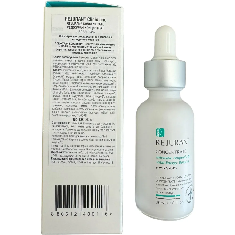 Rejuran Concentrate Rejuvenating Vital Energy Booster – это сыворотка-концентрат, которая входит в серию косметики по уходу за кожей линейки Rejuran. Косметологический продукт разработан на основе полинуклеотидов Clinic Line и органических компонентов, отвечающих за питание и увлажнение кожного покрова. Высокий положительный результат бустера достигается за счет высокой биосовместимости и миниатюрного размера молекул главного компонента. Благодаря таким свойствам осуществляется проникновение полезных веществ в глубокие слои эпидермиса.