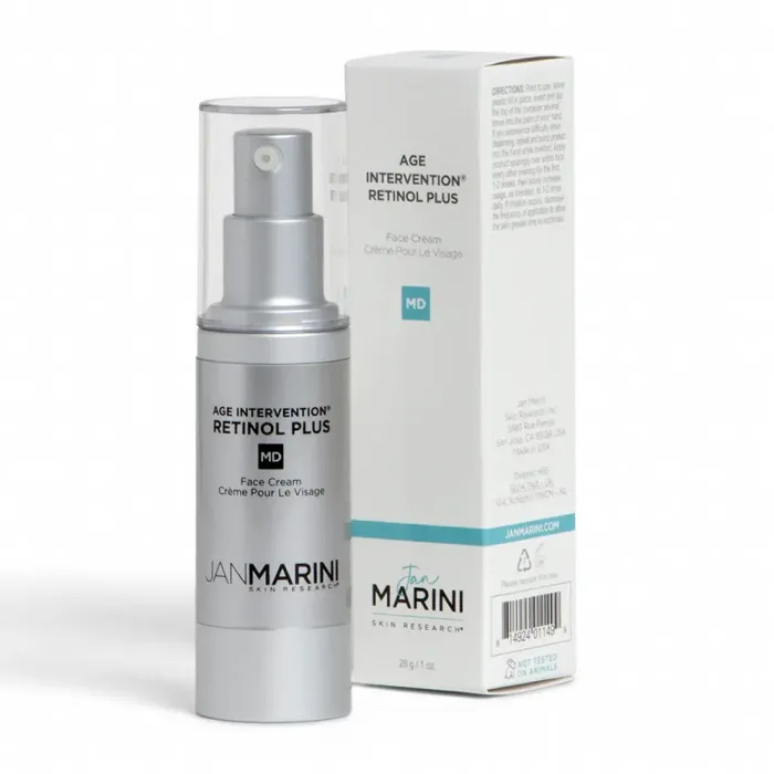 Крем anti-age с ретинолом Jan Marini Age Intervention Retinol Plus MD – это сочетание действенных пептидов, антиоксидантов и ретиноидов. Крем благодаря высокой концентрации всех составляющих заметно убирает и мелкие, и глубокие заломы\морщины, улучшая текстуру кожного покрова. Еще Age Intervention Retinol Plus MD увлажняет и успокаивает дерму, повышает упругость и уменьшает поры.