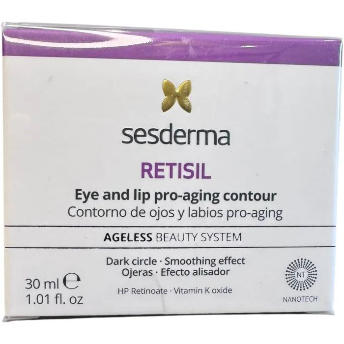 Sesderma Retisil Eye and Lip Cream — мягкий крем для кожи вокруг глаз и губ с ретинолом. Если вы замечаете на веках и вокруг уст тонкие линии, сухость и потерю упругости — этот крем отлично поможет вам. Он работает аккуратно и мягко. Создан именно для этих нежных зон, где кожа быстрее всего теряет тонус. Легкая текстура не перегружает. Впитывается быстро, не вызывает ощущения пленки. Подходит даже для чувствительной кожи.