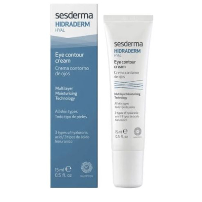 Увлажняющий крем-контур для век Sesderma Hidraderm Hyal Eye Contour Cream активно увлажняет кожу, разглаживает мелкие морщинки, уменьшает признаки усталости и отёчность под глазами. Подходит для всех типов кожи, в том числе сухой и чувствительной. Гиалуроновая кислота делает кожу эластичной, мягкой и упругой, придает ей здоровый, ухоженный вид. Инкапсулированный ретинол разглаживает мелкие морщинки, осветляет и выравнивает тон кожи. Церамиды улучшают барьерные свойства эпидермиса, защищают от обезвоживания и раздражений. Как использовать Нанесите на очищенную кожу вокруг глаз, деликатно массируйте до полного впитывания. Можно использовать утром и/или вечером.