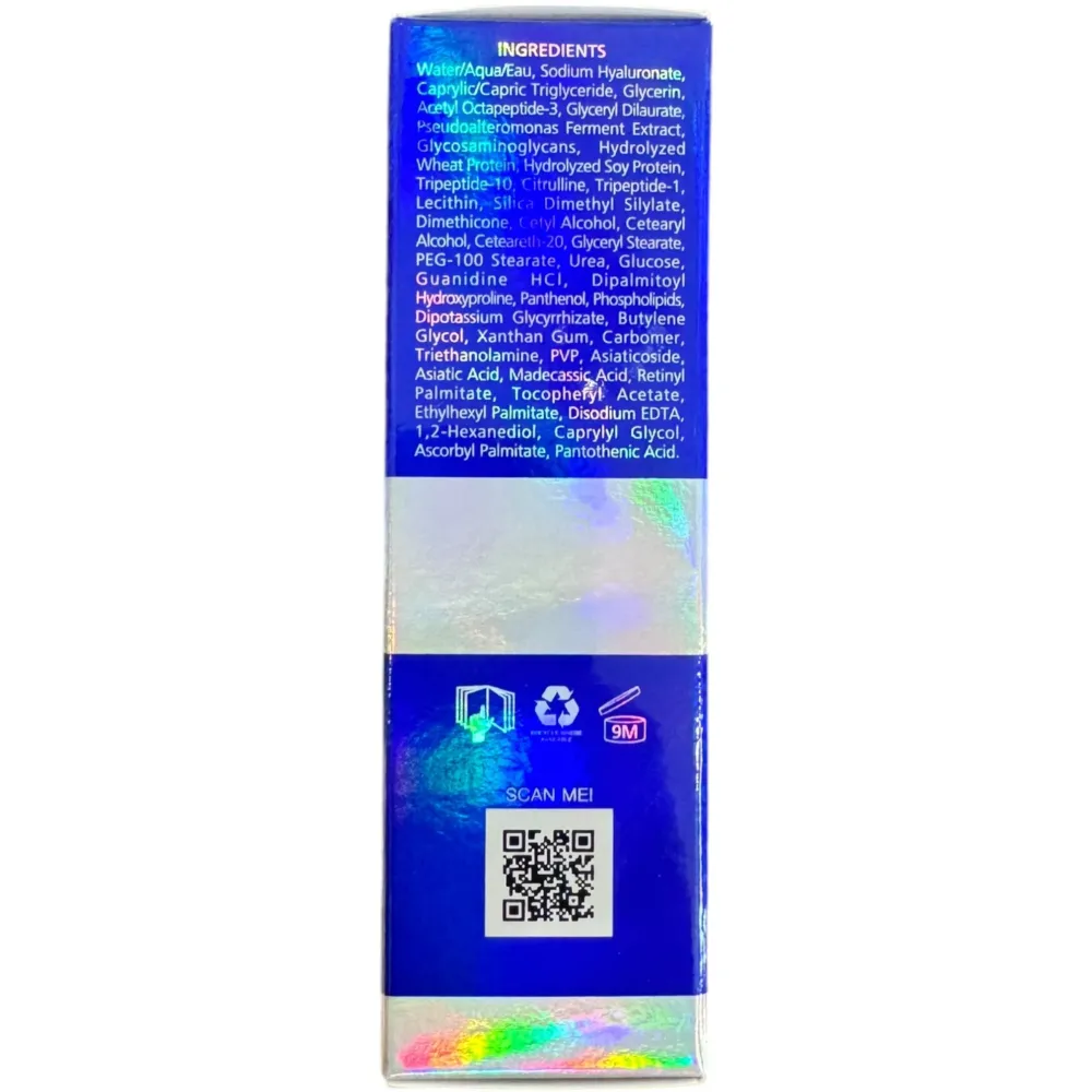 - Трипептид меди (HGF) (запатентовано) - короткая пептидная цепь, которая поддерживает и направляет развитие клеток. Предотвращает патологические процессы старения, восстанавливает здоровую структуру дермы, уменьшает морщины и растяжки.