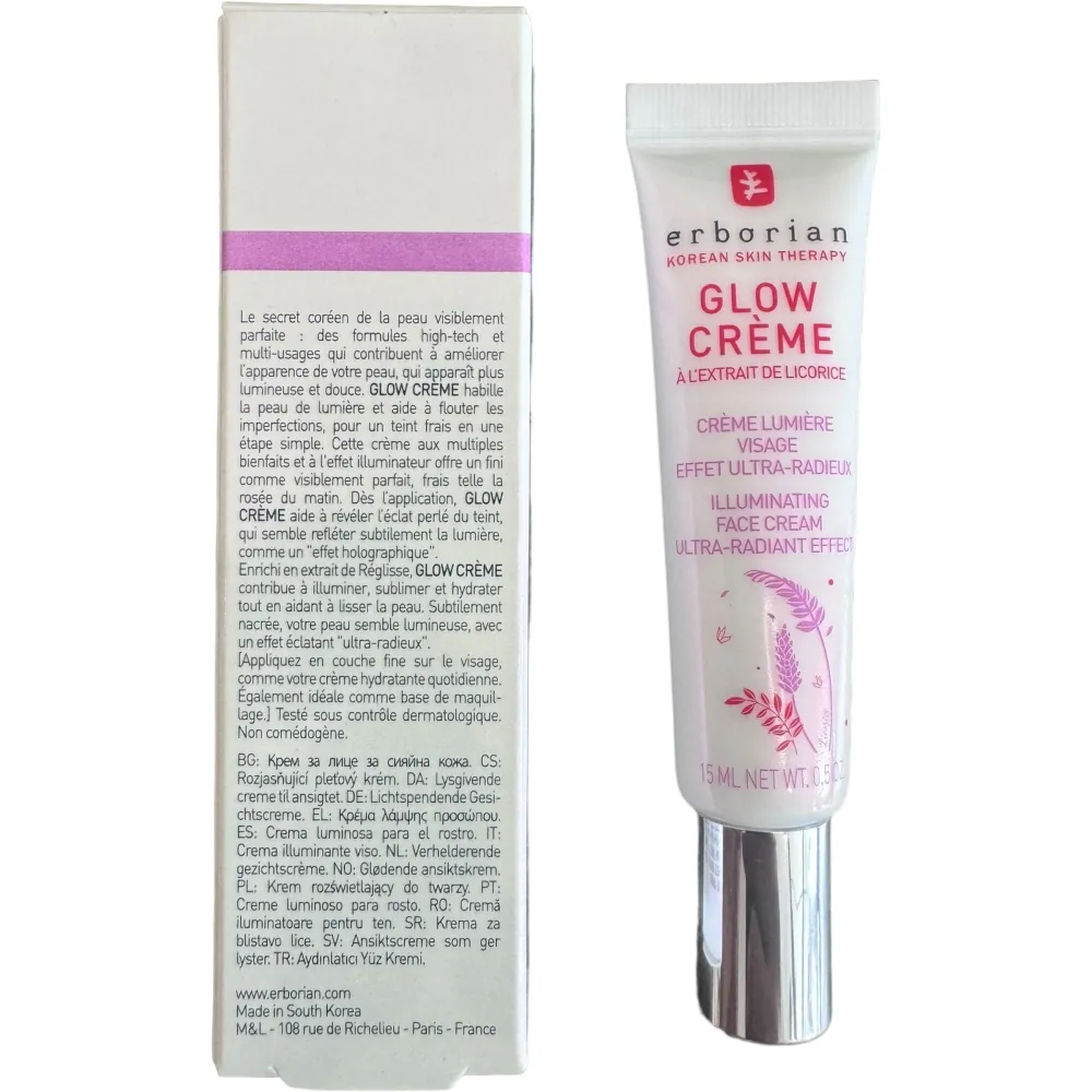 Глоу крем Эрбориан – основа под макияж для ежедневного применения. Средство визуально выравнивает рельеф кожи, обеспечивает омолаживающий эффект. Крем имеет легкую текстуру, становится прозрачным после нанесения на кожу. Вытяжки на основе растительных компонентов замедляют процесс старения. Активные компоненты питают эпителий витаминами и полезными веществами.