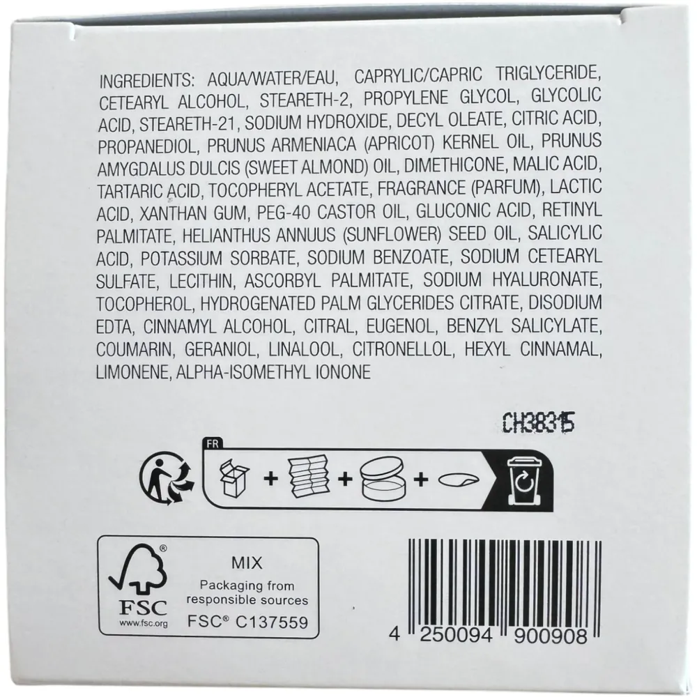 Описание: крем обладает необычайно нежной текстурой и свежим ароматом. Комплекс фруктовых кислот в основе формулы облегчает отшелушивание отживших клеток эпидермиса. Активные компоненты ослабляют связи между ороговевшими клетками и кожной поверхностью, способствуя активному обновлению.