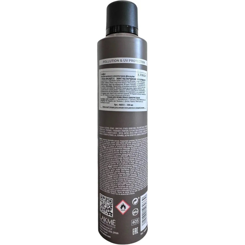 Lakme K.Finish Pliable Flexible Hair Spray ідеальний для тих, хто хоче зберегти природний вигляд зачіски, забезпечивши при цьому стійкість та гнучкість укладання.