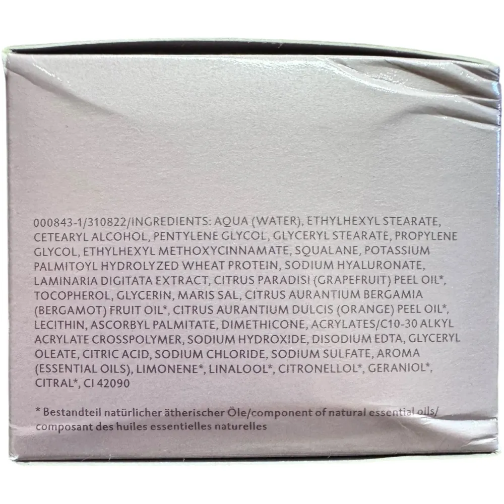 Вода, Минеральные соли, Экстракт морских водорослей, Сквалан, Масло жожоба, Масло ши, Токоферол (витамин Е), Пантенол, Алантоин, Глицерин, Лецитин, Карбомер, Триэтаноламин, Феноксиэтанол, Этилгексилглицерин, Парфюм.