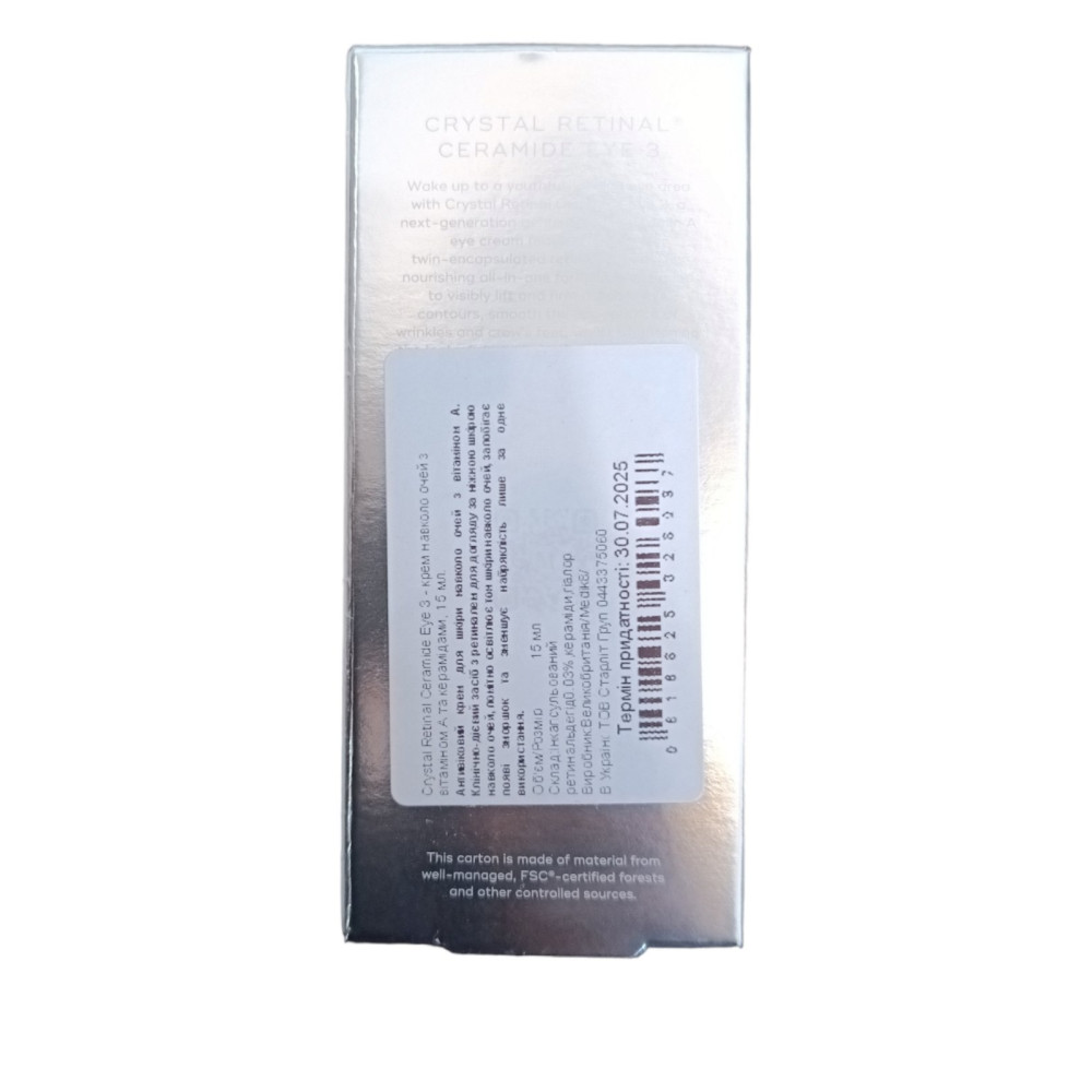 После вечерней очистки нанесите Crystal Retinal Ceramide Eye на зону вокруг глаз, избегая век.