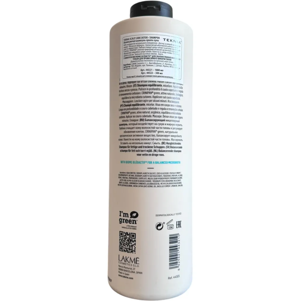 Отзывы про Мицеллярный шампунь против сухой и жирной перхоти Lakme Teknia Scalp Care Detox Shampoo