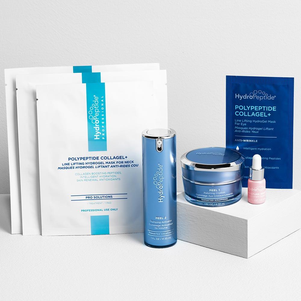 Применение: Полноразмерный двухэтапный пилинг Polish & Plump способствует химическому и физическому отшелушиванию, для мгновенного уменьшения проявления тонких линий и морщин, и ускорения обновления клеток. После отшелушивания нанесите профессиональные маски Collagel + Masks, которые мгновенно успокаивают, увлажняют и питают Вашу кожу. Гидрогелевые охлаждающие маски, содержащие гиалуроновую кислоту и ниацинамид, уменьшат покраснение и раздражение и обеспечат мощное увлажнение. Сохраните удивительные результаты процедур необходимо с помощью масла для лица Moisture Reset, в котором используется 13 натуральных питающих и увлажняющих Вашу кожу в течение всего дня.