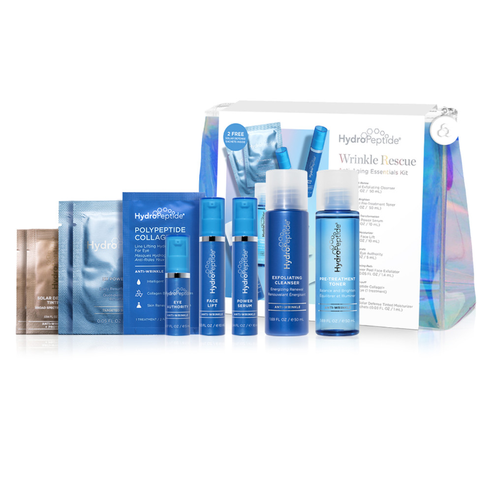 Набор Wrinkle Rescue Kit позволит Вам насладиться профессиональным уходом и увидеть потрясающий эффект во время Вашего путешествия или первого знакомства с продуктами HydroPeptide.