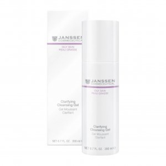 Очищающий гель Janssen Oily Skin Clarifying Cleansing Gel. Clarifying Cleansing Gel — гель, который безупречно очищает поверхность кожи, не повреждая при этом ее естественный защитный барьер. Его натуральные, антибактериальные компоненты предотвращают воспаление и комедонообразование. Не агрессивен, так как уровень рН составляет 6,0. Функции: Глубокое очищение с мягким действием, удаляет загрязнения и закупоривающие поры масла. Предотвращает появление комедонов, папул. Препятствует размножению бактерий.