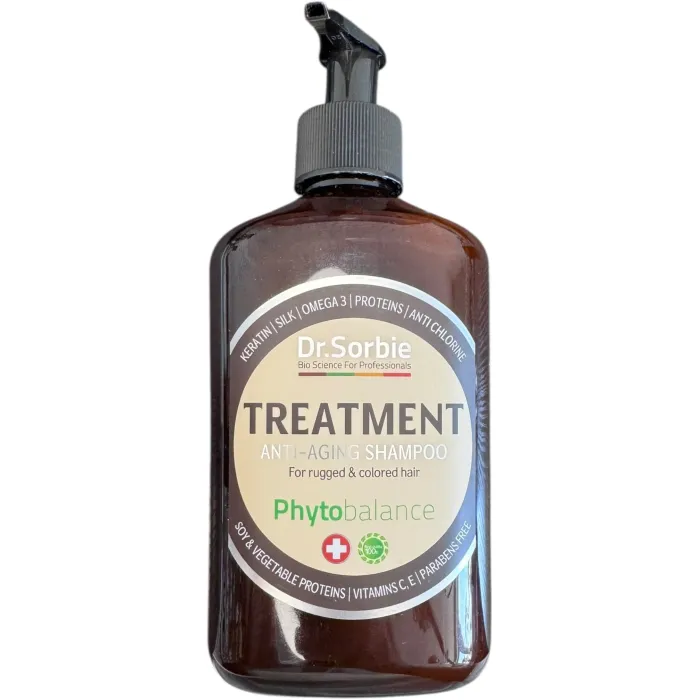 Dr. Sorbie Treatment Shampoo — это питательный шампунь-антихлор для ухода за сухими, окрашенными и химически обработанными волосами. Он создан для тех, кто хочет вернуть волосам силу и блеск после окраски или воздействия хлорированной воды. Шампунь подходит даже для возрастных волос — помогает сохранить эластичность и яркость цвета.