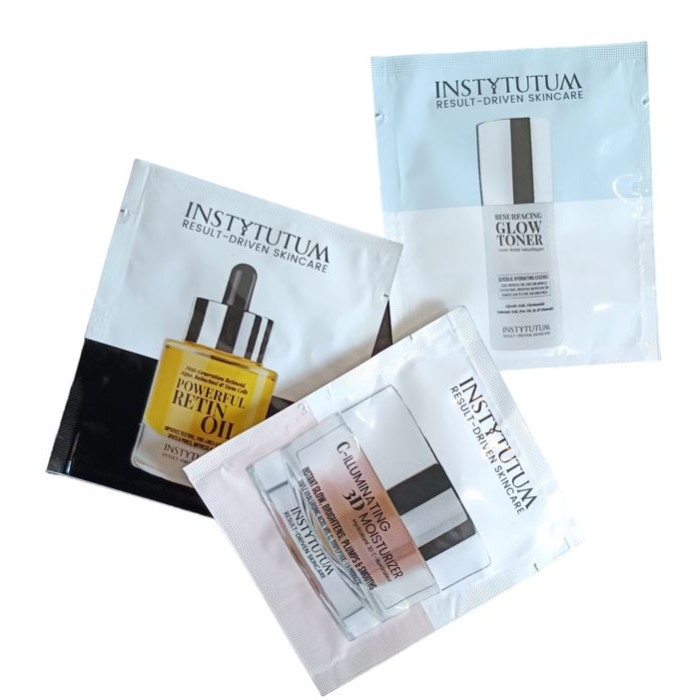 Пробники косметики Instytutum выпускаются в одноразовых соше. На каждом тестере есть штрихкод, номер партии, состав.