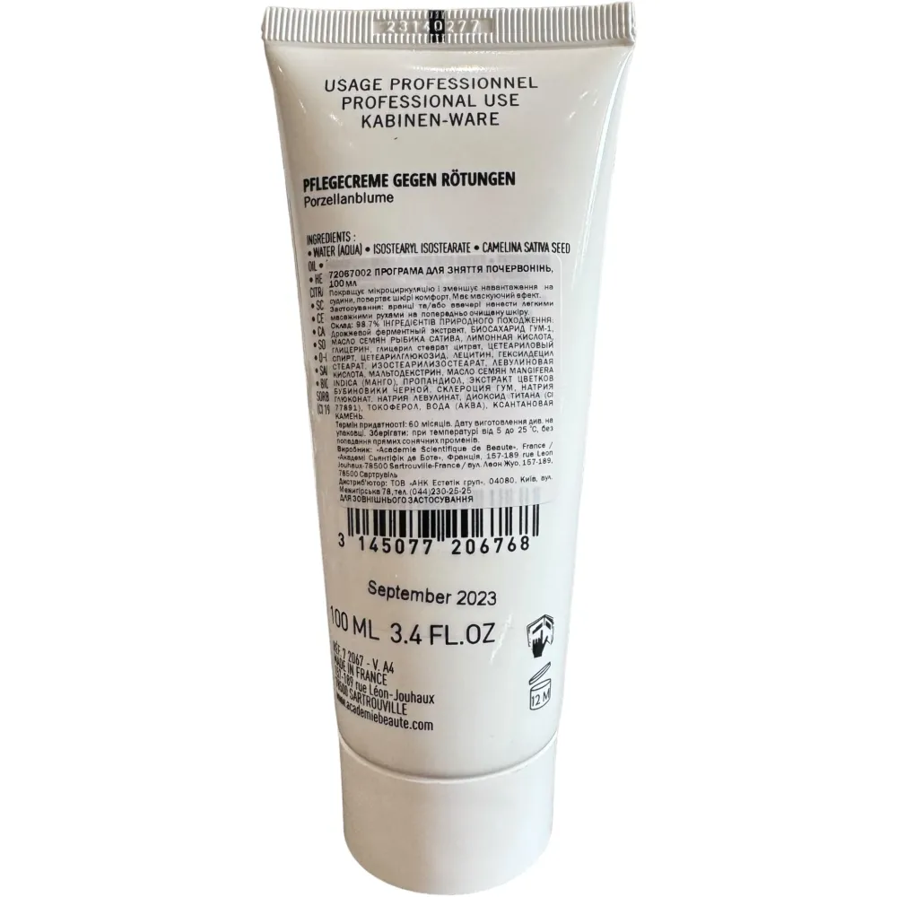 Крем от покраснений Академи подходит для чувствительной кожи, склонной к микроповреждениям и покраснениям. Вытяжки бузины, липы, конского каштана укрепляют стенки сосудов, активизируют кровообращение. Глицирретиновая кислота оказывает антиоксидантное действие. Продукт рекомендован косметологами в качестве профилактики купероза.