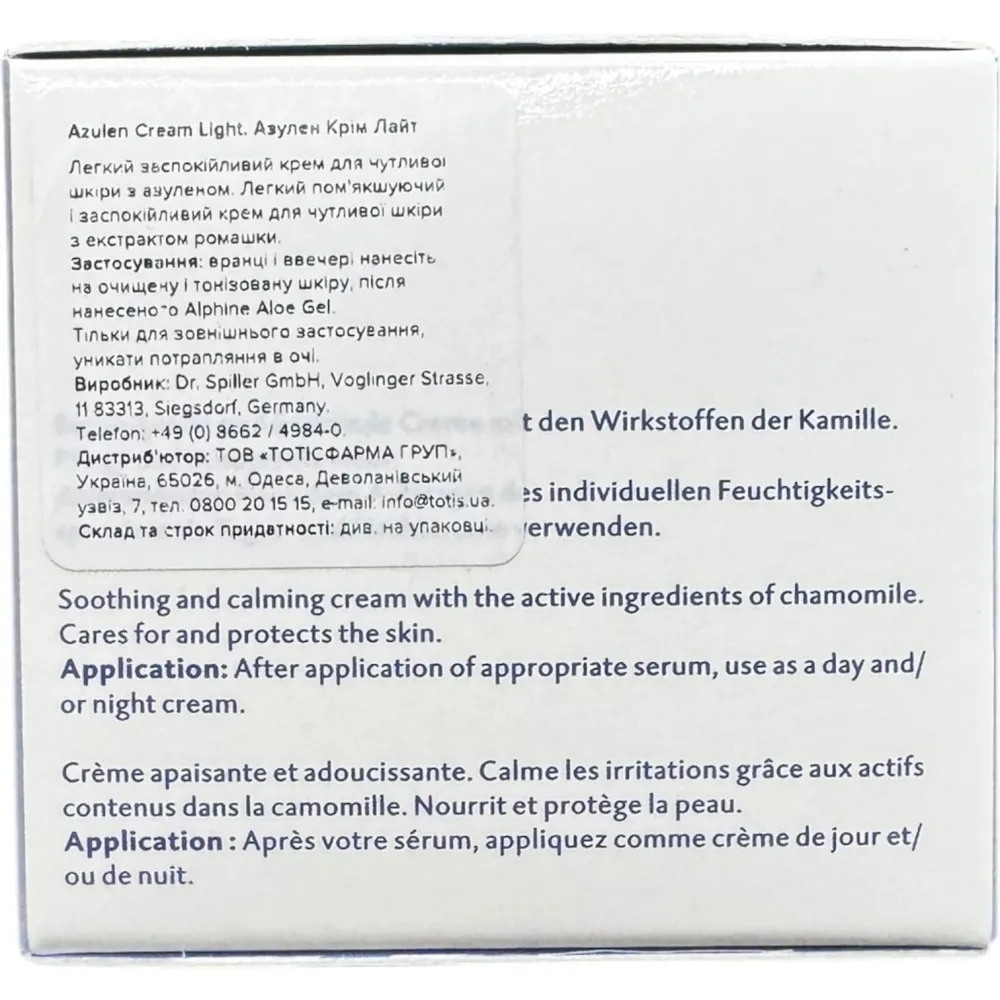 Действие: Успокаивающий крем с азуленом ЛЕГКИЙ - легкий успокаивающий крем. Устраняет покраснение, раздражение, шелушение и создает комплексный защитный барьер от агрессивного воздействия окружающей среды, повышает иммунитет, восстанавливает водный баланс.