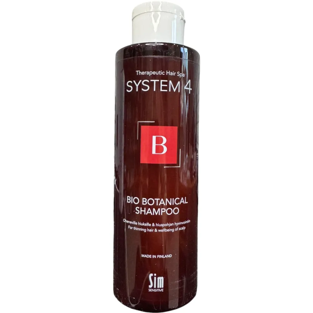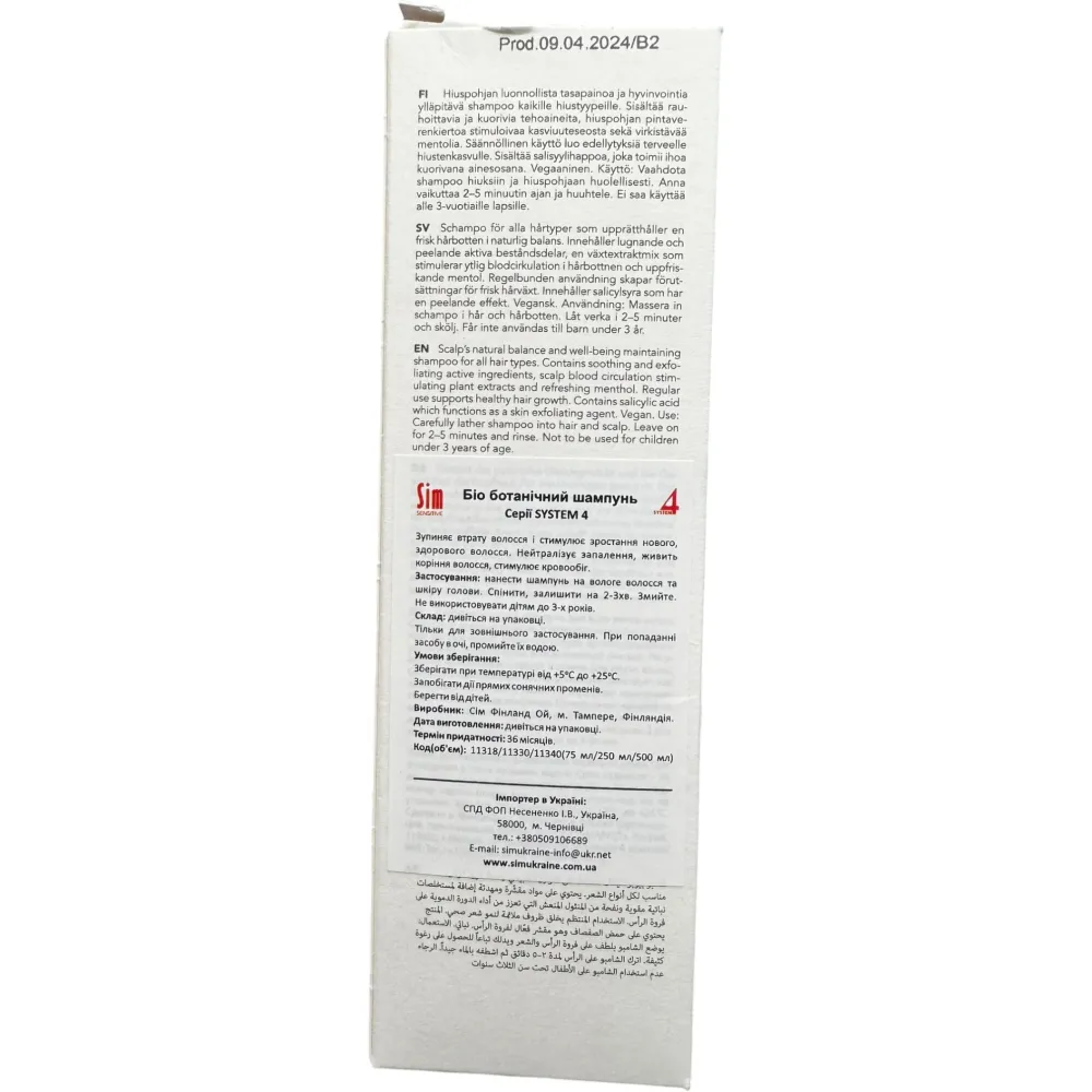 Шампунь стимулирующий рост волос System4 Bio Botanical Shampoo – это очищающее уходовое средство, которое, деликатно воздействуя на кожу головы, оказывает, в том числе, и лечебный эффект. Данный шампунь снимает воспаление и раздражение, дезинфицирует, оказывает противогрибковое действие, а также увлажняет, укрепляет волосы и эффективно борется с выпадением. Кроме того, что он является стимулятором кровообращения, он также возвращает жизненную силу прядям, борется с излишней выработкой себума, оказывает эффект пилинга. Оказывает такое действие, как:
