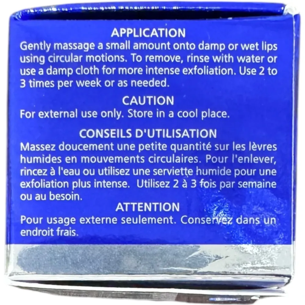 | Показания | Сухость и шелушение губ, тусклый вид, необходимость в деликатном отшелушивании и подготовке губ к нанесению бальзама или помады. |