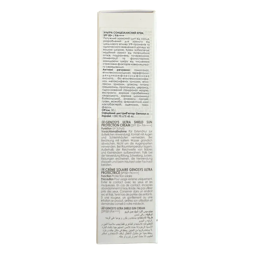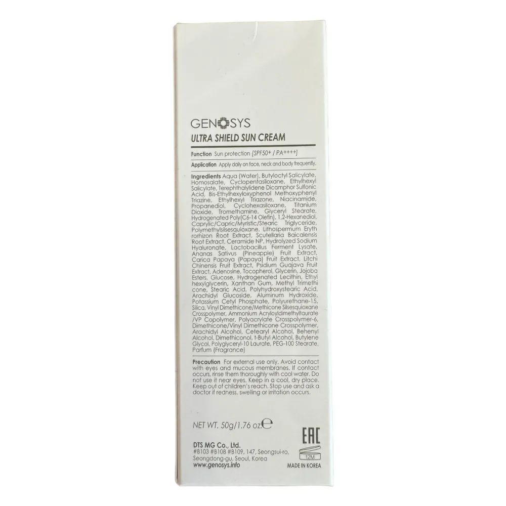 Солнцезащитный крем Genosys Ultra Shield Sun Cream SPF 50 – это косметическое средство с уровнем защиты 50, оберегающим кожные покровы от ультрафиолетового излучения в дневное время. Санскрин обладает легкой текстурой с матирующей некомедогенной формулой, благодаря которой продукт разрешается использовать для любого типа кожи.