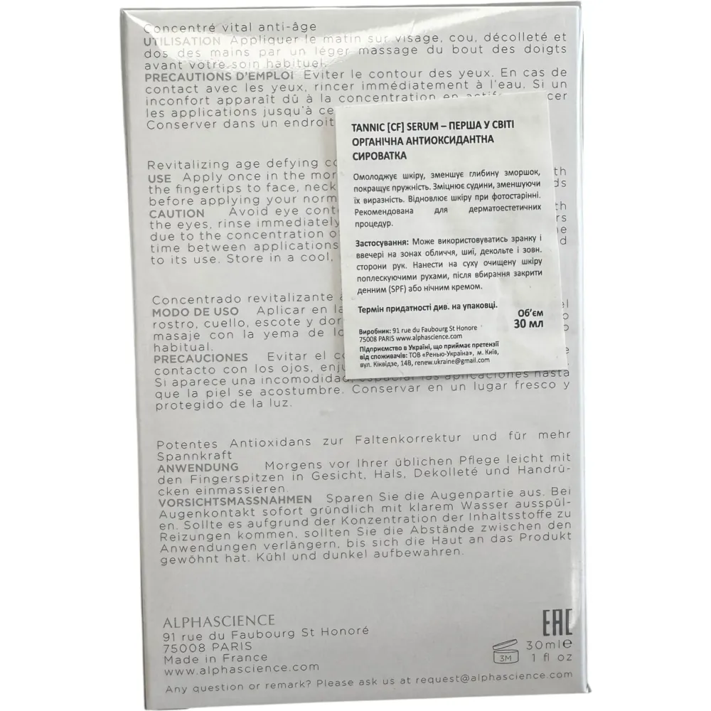 Клинически доказано, что сыворотка Tannic CF делает морщины и покраснения менее заметными, а кожу более упругой. Эта идеальная сыворотка с ингредиентами природного происхождения позволяет коже сохранять всю свою жизненную силу и поддерживает экосистему кожи. Сыворотка помогает уменьшить проявления фотоповреждений и покраснений за счёт снижения хрупкости кровеносных сосудов. Она разглаживает тонкие линии, улучшает текстуру и тон кожи, благодаря чему цвет лица становится более чистым и здоровым.