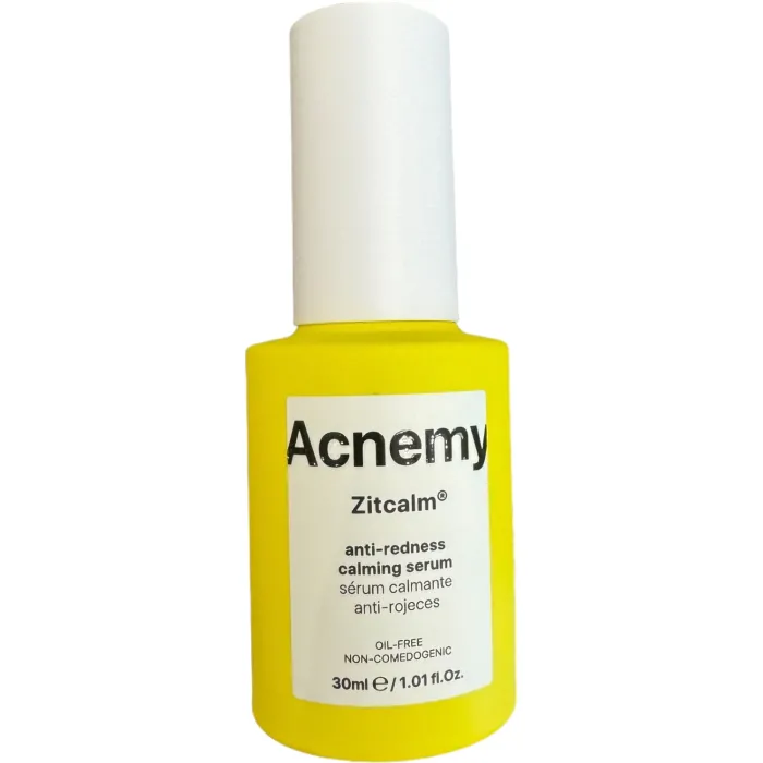 Acnemy Zitcalm Anti-Redness Calming Serum — сыворотка против покраснений и раздражений, разработанная для чувствительной кожи, склонной к акне. Успокаивает, укрепляет кожный барьер и уменьшает воспаления. В составе: ниацинамид, центелла азиатская, азелаиновая кислота и пребиотики. Легкая текстура, быстро впитывается, подходит для ежедневного применения.