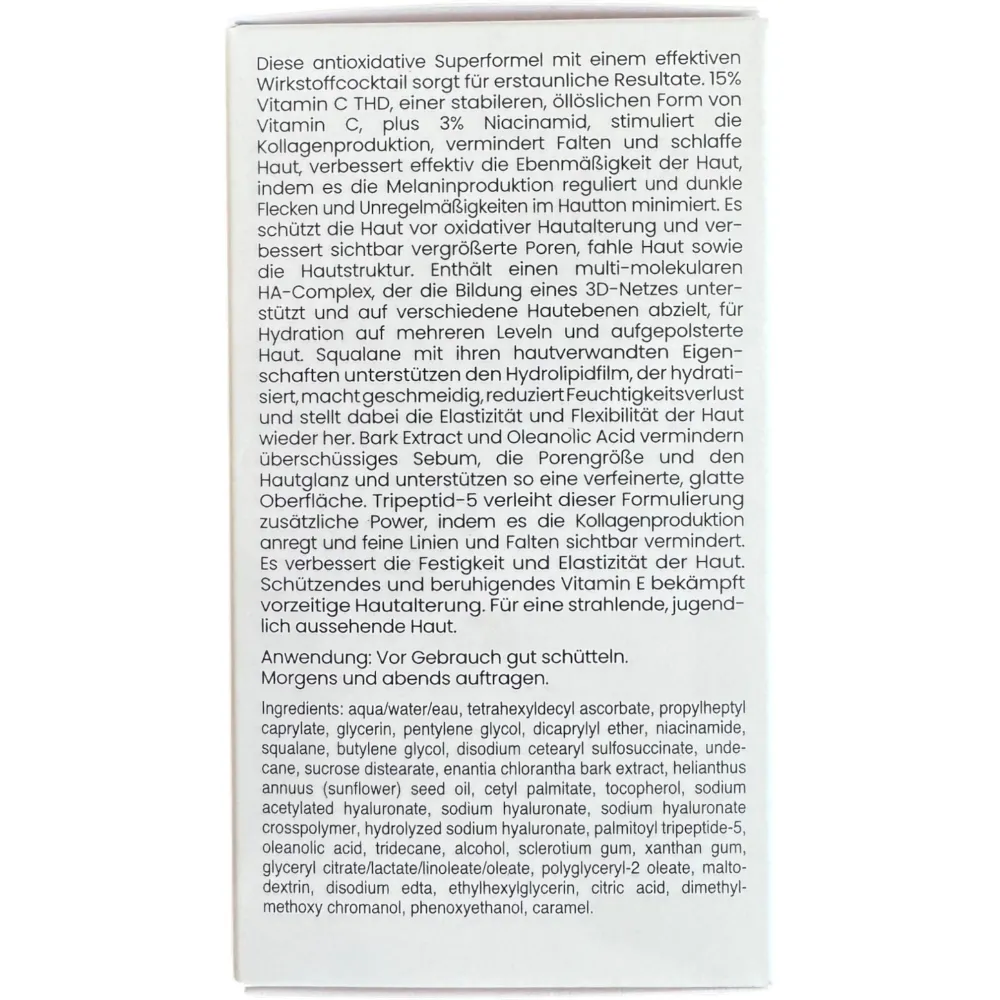 Серум с большой концентрацией витамина С проникает глубоко в кожу, наделяя её необходимыми компонентами. Именно такая эмульсия придает коже естественную свежесть, а лицу здоровый вид.