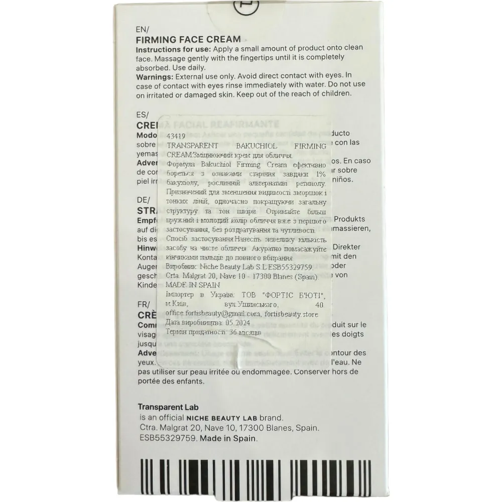 Transparent Lab Bakuchiol Firming Cream — укрепляющий крем с бакучиолом, растительной альтернативой ретинолу. Повышает упругость кожи, уменьшает морщины и выравнивает тон без раздражения. Подходит для чувствительной кожи и ежедневного применения.