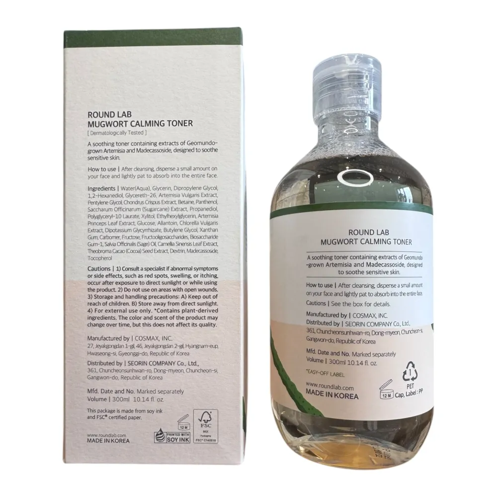 Round Lab Mugwort Calming Toner – это успокаивающий тонер с полынью, который предназначен для снятия раздражения с кожи, а также ее увлажнения и тонизации. Помимо практически моментального успокоения, данный тонер также заживляет ранки, бережно смягчает и даже дезинфицирует. Еще этот уходовый продукт от Round Lab благодаря тому, что регенерирует клетки, омолаживает кожный покров – визуально разглаживает и осветляет тон. Тонер непосредственно решает задачи в виде устранения покраснения и раздражения, но при этом хорошо регулирует выработку себума и матирует. Средство освежает кожу и улучшает ее вид в целом. Подходит для кожи всех типов. Наиболее эффективен тонер для сухой, раздраженной, склонной к акне коже, а также идеален и для чувствительной. Пользоваться можно от 18 лет и старше. Главная особенность этого средства в действительно быстром уменьшении раздражения и восстановлении дермы.