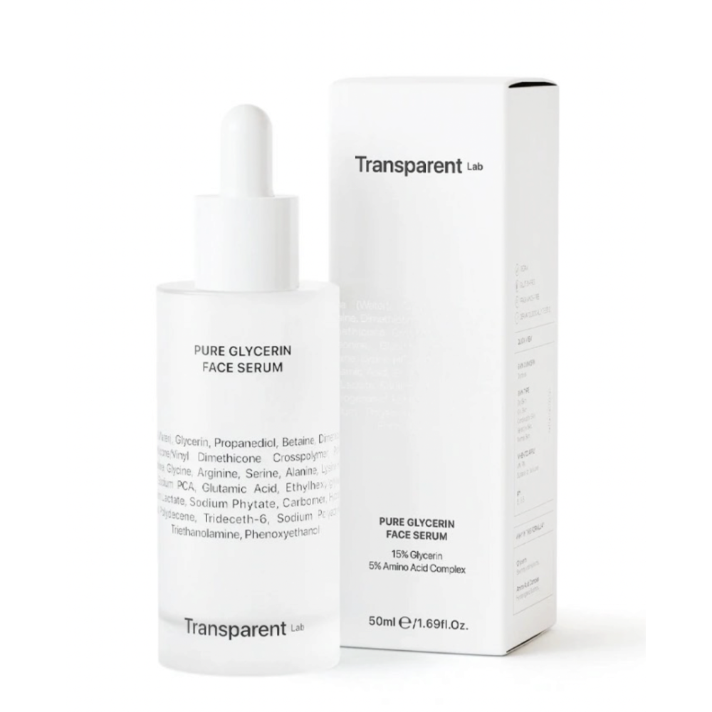 Transparent Lab Pure Glycerin Face Serum — увлажняющая сыворотка с глицерином, глубоко наполняет кожу влагой, делает её мягкой, упругой и гладкой. Подходит для ежедневного ухода и всех типов кожи.
