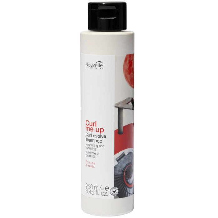 Nouvelle Curl Evolve Shampoo 250 мл – шампунь для вьющихся волос. Линейка Curl Me Up представляет различные товары для вьющихся и вьющихся волос, и шампунь является одним из них. Содержит масло жожоба и экстракты семян киноа. Он эффективно очищает, питает, увлажняет и противодействует пушистости, делая волосы мягкими без отягощения, облегчает процесс расчесывания и повышает его эластичность. Рекомендуется использовать в комплексе с другими линейками Curl Me Up.