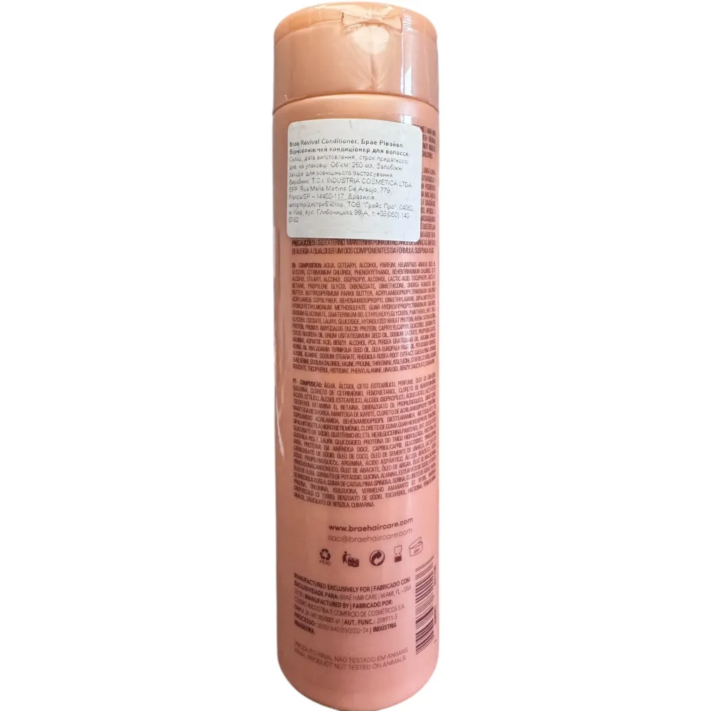 Brae Revival Reconstruction Conditioner — это кондиционер, разработанный специально для восстановления сильно ослабленных и поврежденных волос. Он подходит для домашнего использования и является частью профессиональной линейки Revival вместе с шампунем и маской. Средство превращает ломкие, тонкие, сухие пряди в блестящие и шелковистые, восстанавливает структуру волос после блондирования, окрашивания, завивки и других типов химического воздействия.