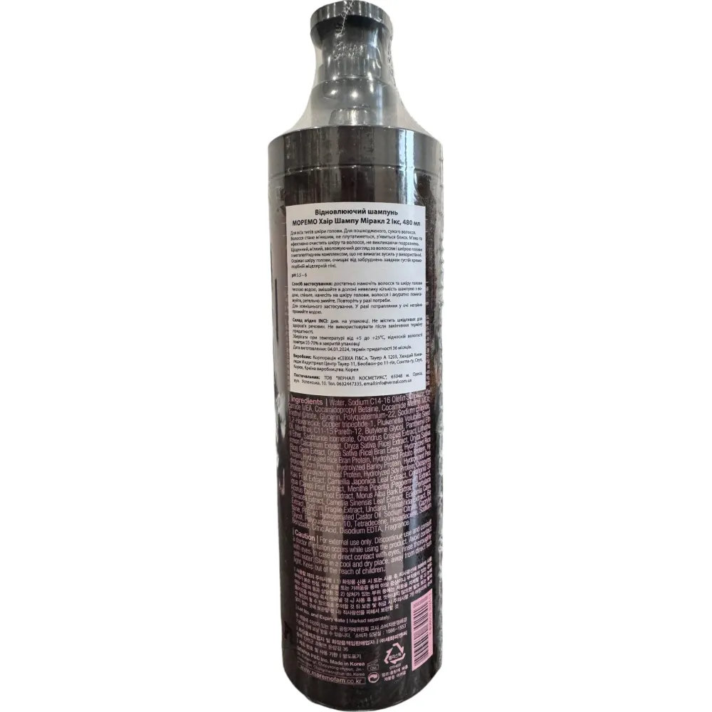Moremo Hair Shampoo Miracle 2X — восстанавливающий шампунь без сульфатов для ослабленных и повреждённых волос. Мягко очищает, укрепляет корни, придаёт объем и блеск. Формула с белками, кератином и растительными экстрактами улучшает структуру волос и стимулирует рост.
