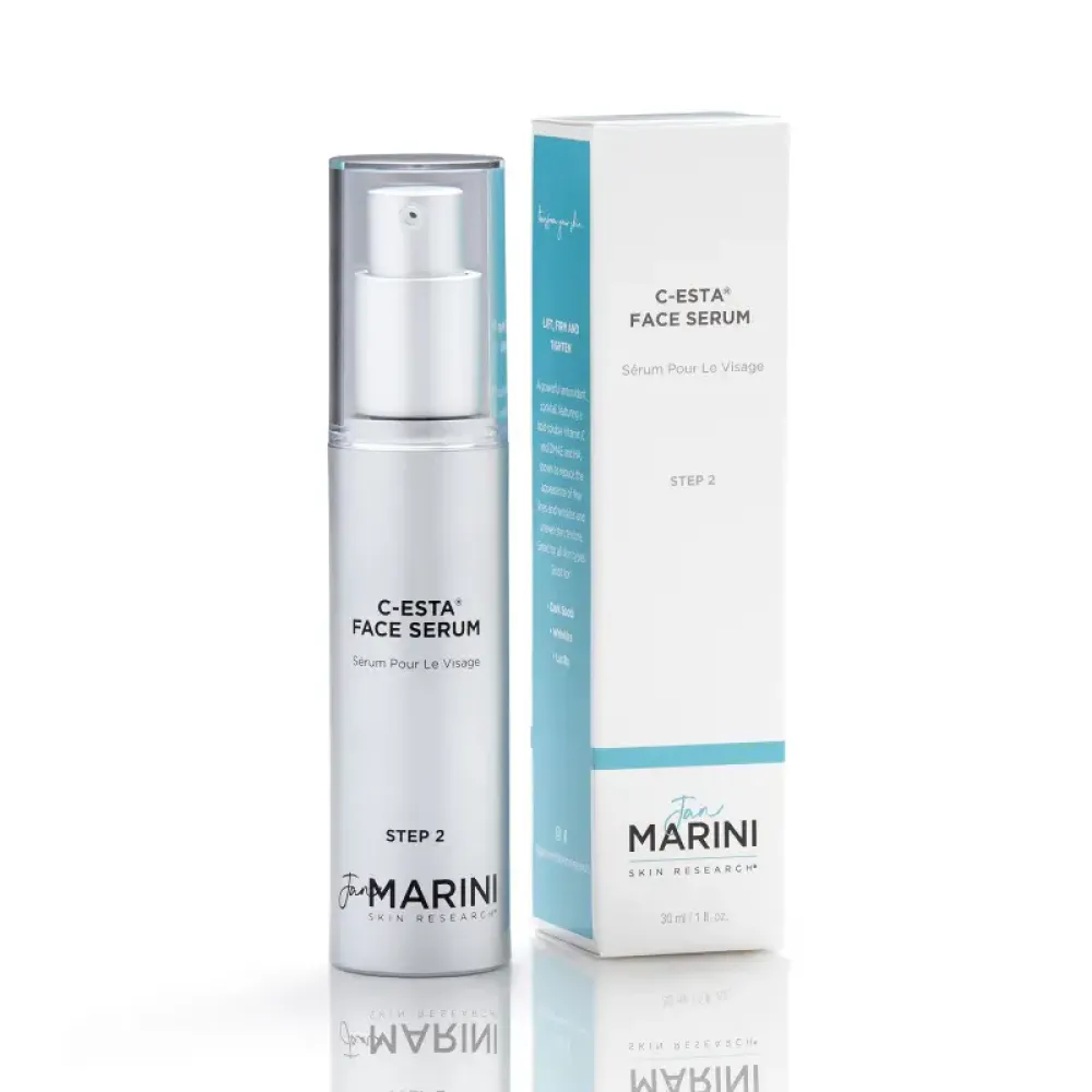 Jan Marini C-Esta Face Serum (Антивікова сироватка). Помітили, що шкіра почала втрачати пружність і з'явився тьмяний відтінок? Ця сироватка якраз створена для того, щоб упоратися з першими віковими змінами. Що робить її особливою? Вона об'єднала у собі цілий комплекс сильних антиоксидантів та активів. Вони швидко повернуть шкірі сяйво та свіжість. Невагома текстура есенції миттєво вбирається, не залишаючи ні жирності, ні відчуття тяжкості. При регулярному застосуванні сироватки, ви помітите підтягнутість і пружність, що повернулися до шкіри. Як це відбувається? Вітамін С у складі активно бореться з пігментацією та вирівнює тон обличчя, надаючи йому ту саму свіжість, яку так хочеться бачити вранці. А згодом - сяйво буде помітно ще більше.