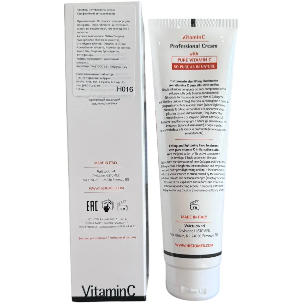 Vitamin C Professional Cream – це професійний крем фініш від італійського виробника Histomer. Формула крему призначена для гарантованого пролонгованого впливу всіх інгредієнтів. Як результат – шкіра сяє молодістю та свіжістю, овал обличчя контурується та шкіра помітно розгладжується.