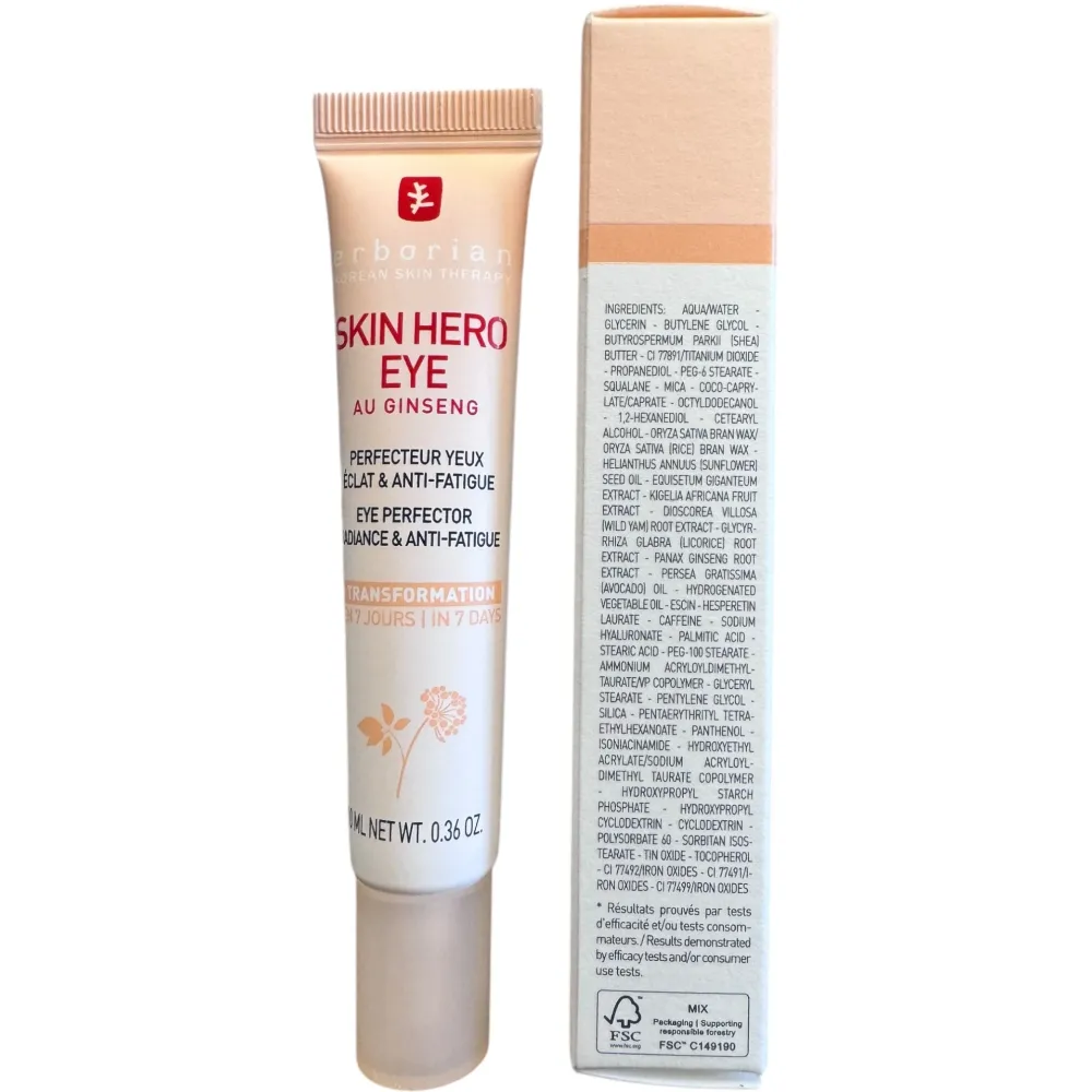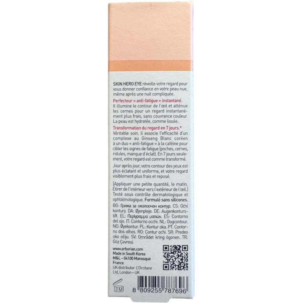 Erborian Skin Hero Eye - це коригуючий крем для шкіри навколо очей, розроблений для миттєвого покращення зовнішнього вигляду цієї делікатної області. Цей крем поєднує в собі доглядові та декоративні властивості, допомагаючи візуально зменшити темні кола, припухлості та інші недосконалості, одночасно доглядаючи шкіру.