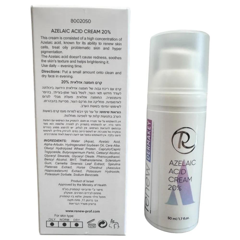 Вода, Азелаїнова кислота (20%), Пропіленгліколь, Цетеариловий спирт, Гліцерин, Каприлік/каприновий тригліцерид, Диметикон, Сквалан, Ніацинамід, Пантенол, Алантоїн, Бетаїн, Карбомер, Натрію гідроксид, Токоферол (вітамін Е), Феноксіетанол, Етилгексилгліцерин.