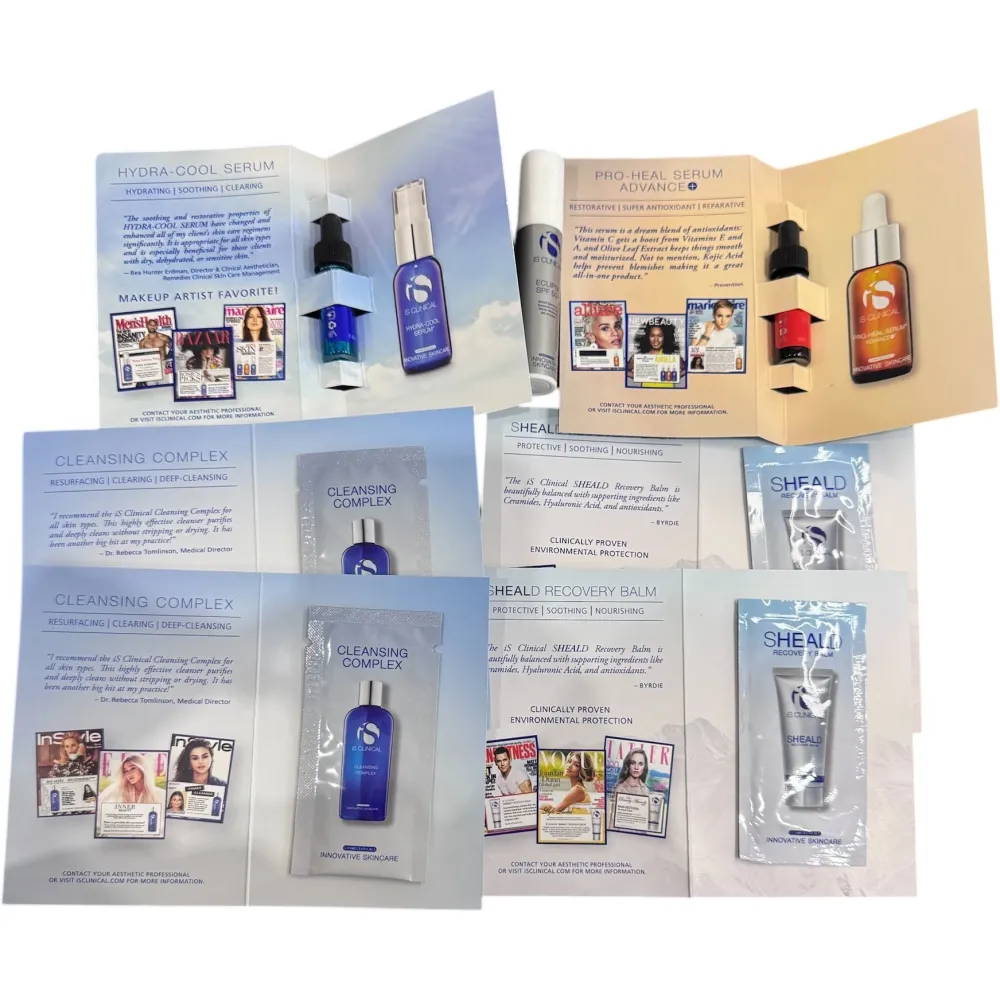 Крем сонцезахисний - iS Clinical Eclipse PerfecTint Beige SPF50+, 10g + Сироватка для обличчя - iS Clinical Pro-Heal Serum Advance+, 3.75ml + Сироватка для особи - iS Clinical Hydra-Cool Serum, 3.75ml + Бальза , 2x3g + Гель для вмивання - iS Clinical Cleansing Complex, 2x2ml