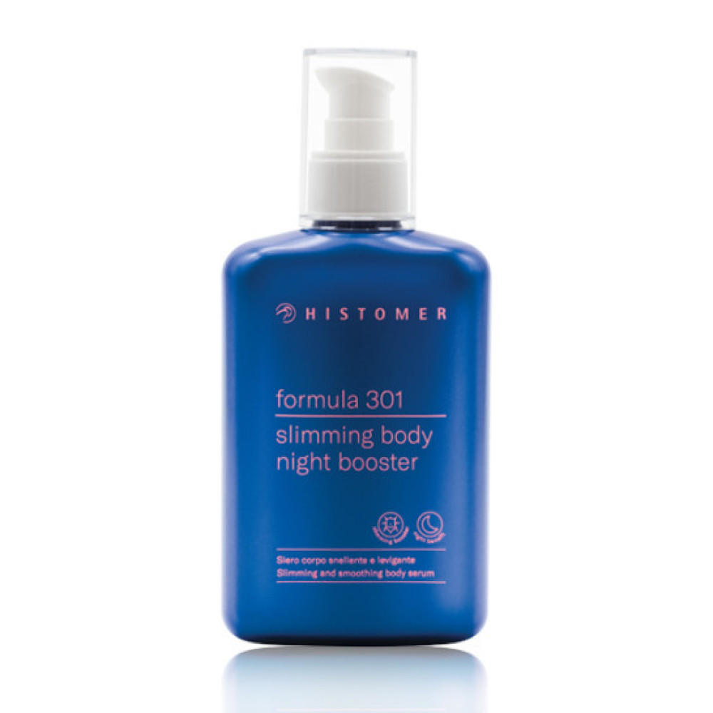 Нічна сироватка для схуднення та ліфтингу тіла Histomer 301 Slimming Body Night Booster. Інноваційна сироватка, розроблена для нічної корекції фігури. Активні компоненти засобу прискорюють метаболізм жирових клітин, сприяють виведенню зайвої рідини, підвищують пружність шкіри та забезпечують потужний ліфтинг-ефект. Ідеально підходить для догляду за проблемними зонами: стегна, живіт, сідниці.