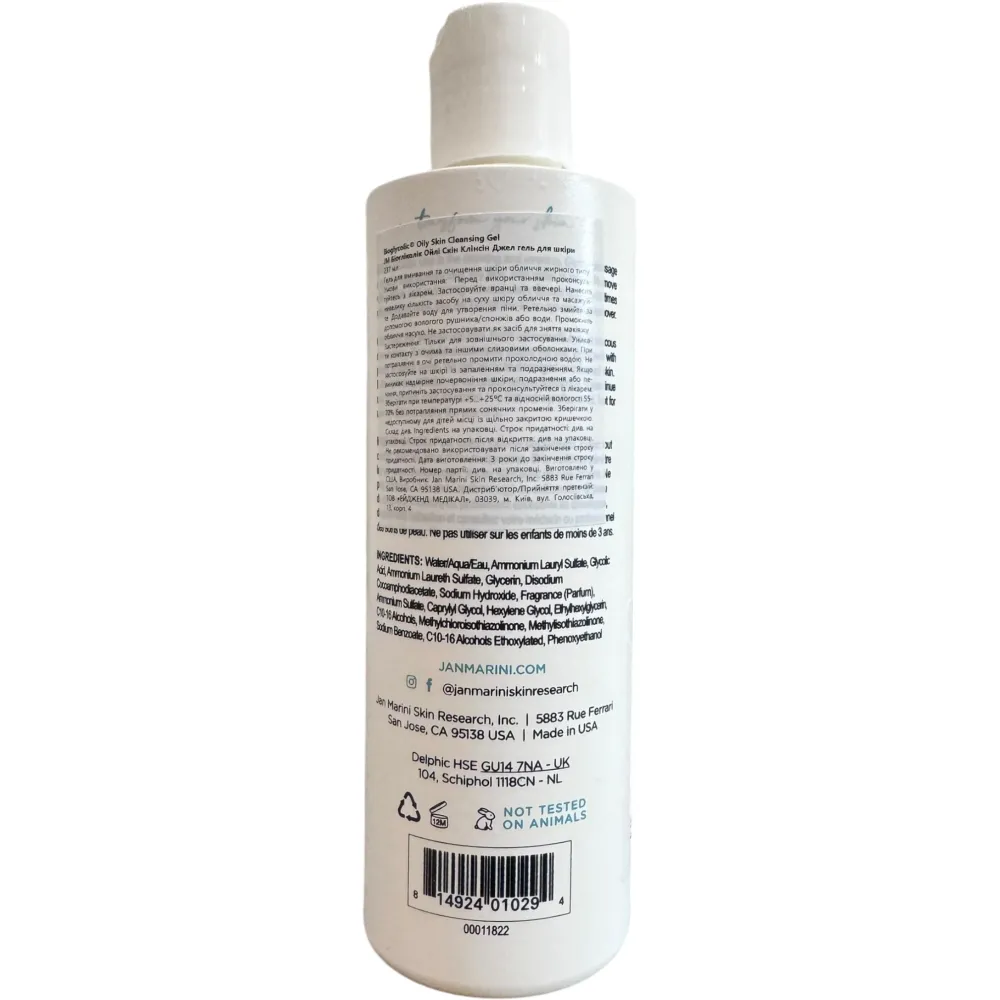 Очищаючий гель для жирної шкіри Jan Marini Bioglycolic Oily Skin Cleansing Gel – це продукт догляду, який дає дійсно ефективне очищення дерми. Він здійснює буквально фолікулярне очищення, що прибирає і сальні пробки, і акне, і зайвий себум загалом. Ще цей гель робить шкіру м'якою, стимулює посилену регенерацію ороговілого шару, профілактує майбутні запальні елементи та вирівнює тон шкірного покриву. Засіб справляється безпосередньо з надмірно жирною шкірою, проблемною і дуже схильною до висипів або вже з висипом вугрів. Конкретні свідчення: