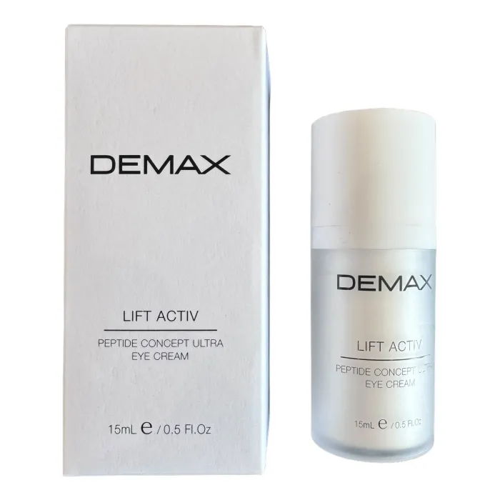 Крем відноситься до сучасних інноваційних продуктів, що коригують структурні недоліки в тканинах шкіри - провисання, наявність зморшок, послаблення міцності волокон через нестачу білка. Demax Lift Activ Eye Defense Crema Peptide Solution з моментальною швидкістю забезпечить ліфтинг, подарує довгостроковий ліфтинг-ефект. Поліпшить стан колагенового волокна, ліквідуючи причини такого стану. Тобто давши їм те, чого в них дуже мало чи недостатньо.