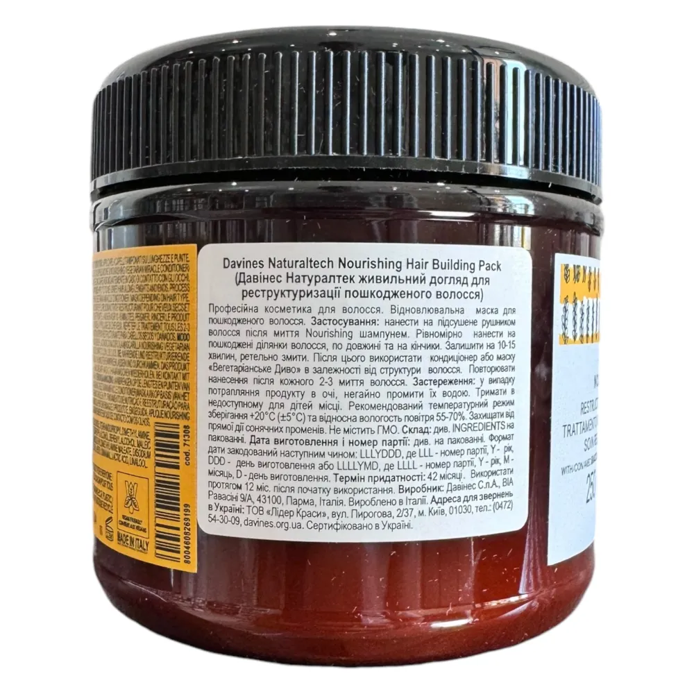 | Активні компоненти | Пшеничні білки, амінокислоти, вітамінний комплекс, рослинні олії, екстракти та зволожувальні агенти. |
