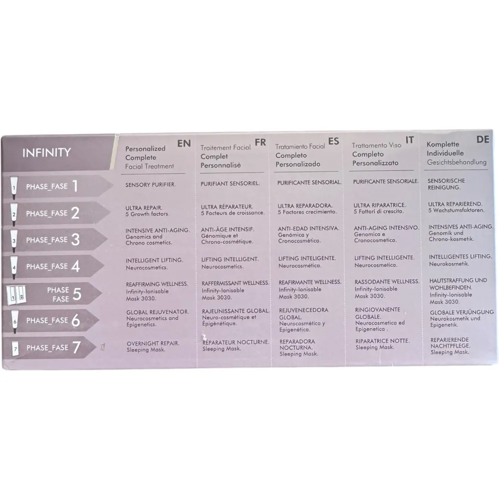 Нанести весь вміст пакетика INFINITY Sleeping Mask на чисті обличчя та шию перед сном у день проведення професійного догляду. Змити великою кількістю води наступного ранку. Наступного ранку проведіть свій звичний ритуал краси, використовуючи фазу № 6.