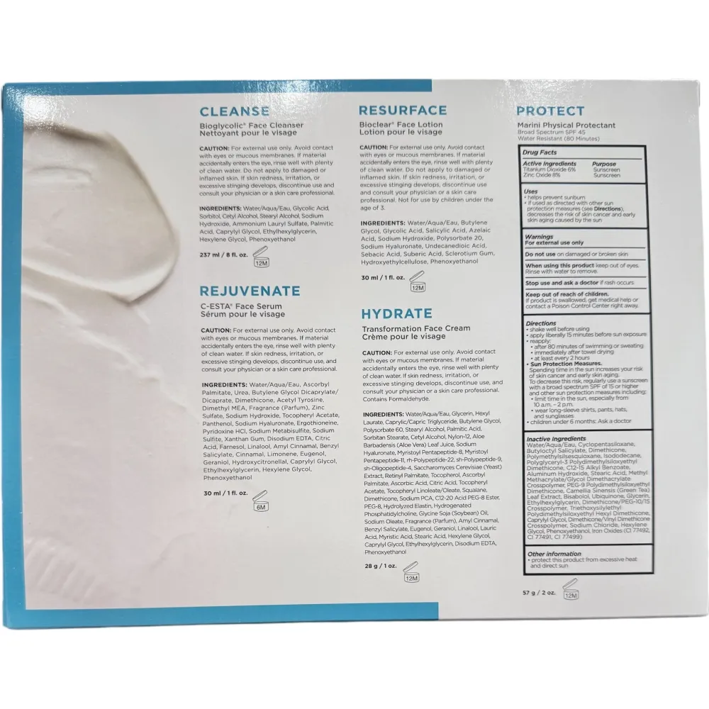Очистити суху шкіру засобом для очистки Bioglycolic Face Cleanser і ретельно змити. Нанести C-ESTA Face Serum для омолодження, скористатися лосьйоном Bioclear Face Lotion та зволожити шкіру кремом Transformation Face Cream. Догляд завершити засобом захисту Antioxidant Daily Face Protectant SPF 33, який потрібно оновлювати кожні 2:00 протягом дня, не наносячи на ніч.