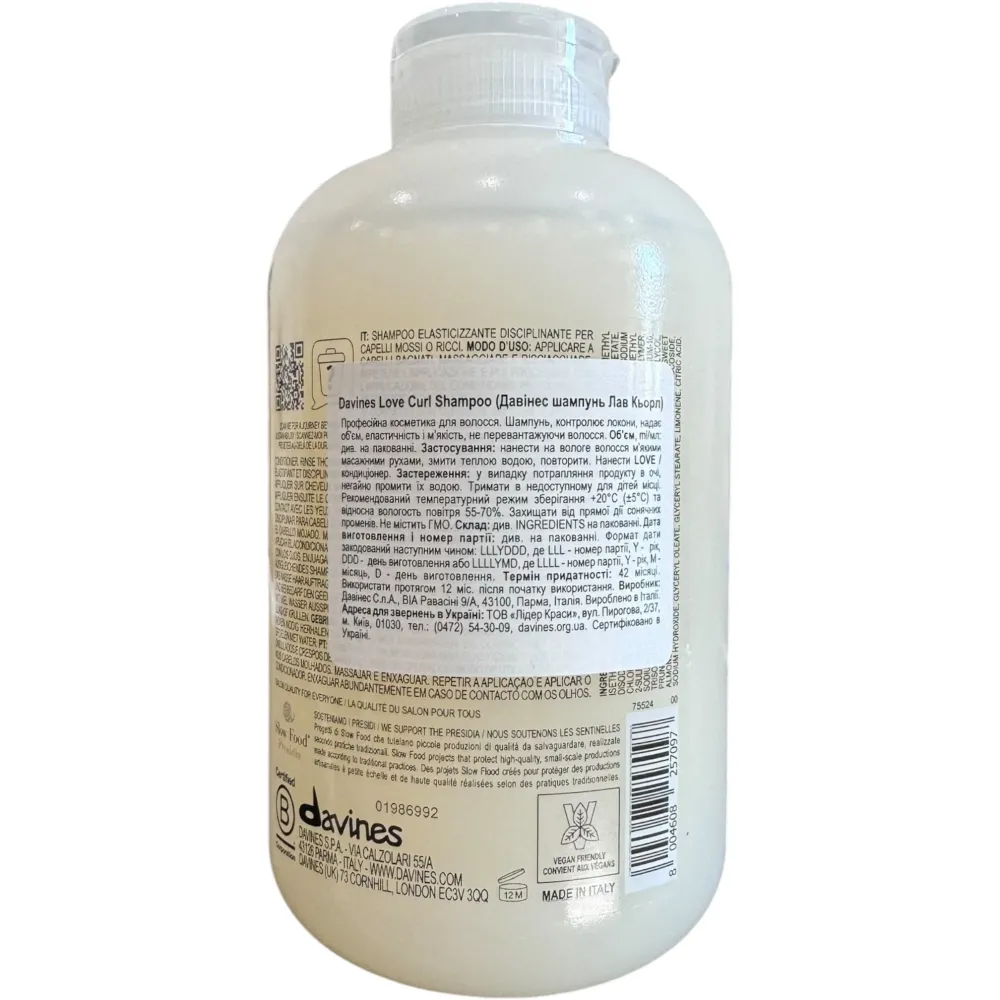 | Рекомендація | Нанести на вологе волосся, спінити, делікатно масажуючи шкіру голови та довжину. Ретельно змити. За потреби повторити. Для максимального ефекту використовувати разом із кондиціонером LOVE Curl. |