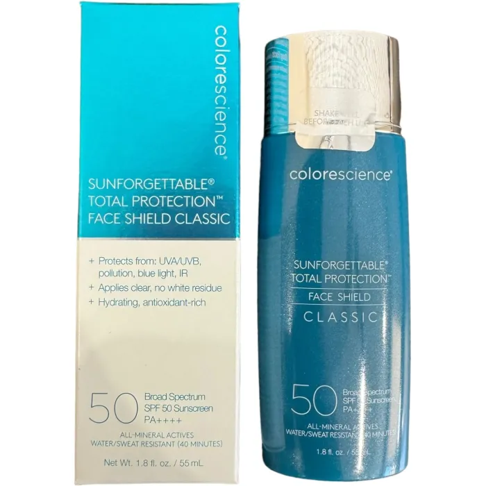 Colorescience SPF 50 Classic відрізняється стійкістю до дії води та придатністю для будь-яких видів шкіри. Він захищає від сонячних променів, перешкоджає процесам старіння та загоює подразнення та пошкодження шкіри. Крем очищає, розгладжує зморшки, відновлює водно-сольовий баланс і насичує шкіру вітамінами та антиоксидантами.