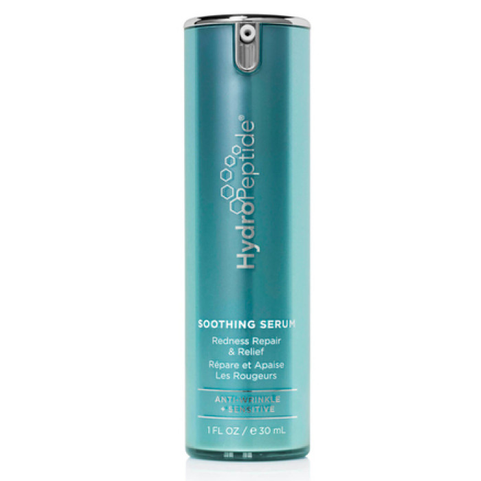 Відновлююча сироватка-флюїд, у складі якої використовуються інноваційні (знімають почервоніння) пептиди та рослинні стовбурові клітини, що зменшують появу видимих почервонінь та заспокоюють чутливу та роздратовану шкіру. Сироватка HydroPeptide Soothing Serum рекомендована як засіб, що загоює і відновлює, після процедур активного омолодження таких як: пілінги, ін'єкційні процедури, шліфування, лазерні впливи, пластичні операцій.⠀